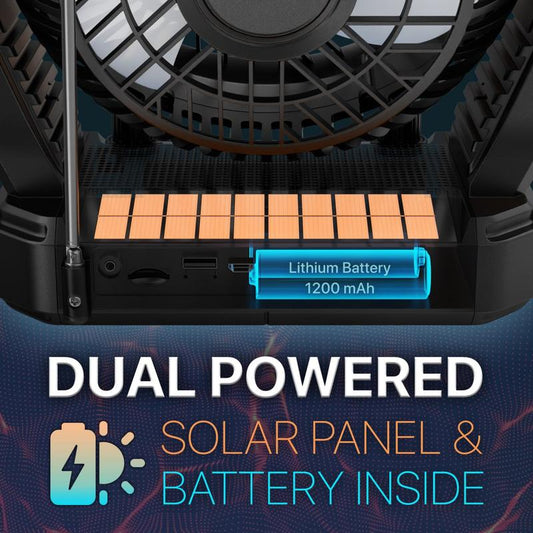 Experience Ultimate Comfort and Entertainment with the Fuzix Aero Solar-Powered Portable Fan & Bluetooth Speaker - Featuring 3 Adjustable Wind Speeds, LED Flashlight, and Versatile Audio Options!